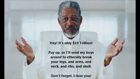 Do not mock the omnipotent, omnipresent, omniscient, admittedly invisible angry Lord Fraud Almighty ~ Fearful is his power to torment souls in fire and brimstone forever ~ Fair and just are his enormous US Fed deficits flowing from the cornucopia of incredibly wise kookiness that always surrounds the mystery of his omnipotent omnipresent wisdom ~