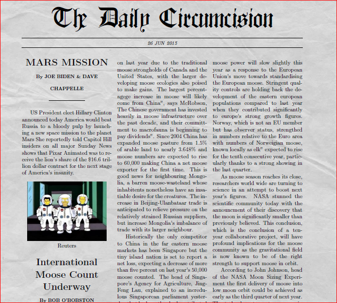 ‘US President elect Hillary Rodman Clinton announced today America would beat Russia to a bloody pulp by launching a new space mission to the planet Mars ~ She reportedly told Capitol Hill insiders on all major Sunday News shows that Pixar Animated was to receive the lion’s share of the $16.666 trillion dollar contract for the next stage of America’s insanity.’