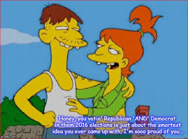 So how about ‘JEB BUSH’ or ‘HILLARY CLINTON’ in 2016 America, then we can all stand around (In the cold) waiting to watch you guys give each other a fraternal reach-around ~ Matter of fact, it don’t matter ‘WHO’ you (Think you) choose, we’ll all be standing around in the cold waiting to watch you give each other a fraternal reach around ~ The least you could do is hire Vince McMahon and the ‘D-Generation’ crew like ‘HHH’ and Shawn Michaels to write stuff so you can make it funny 😉
