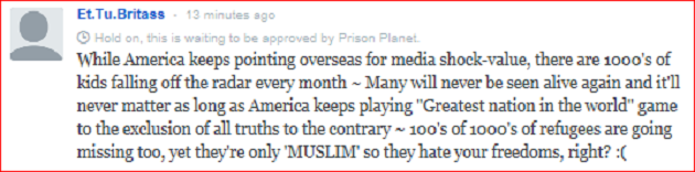 Hold on, this is waiting to be approved by Prison Planet.