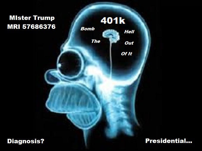 Verna’s Dream @Verna’s Dream……. Hey, Verna, check out Trumpy and his plan for America’s imaginary ‘ISIS’ psychosis, good old 2012 presidential contender Trumpy says he’d “Get everybody together” and he’d “Blast the hell out of them. They wouldn’t be there long” ~ Says he’d “Blast the hell out of them” ~ Says “Their primary source is the oil” ~ He’d “Bomb the hell out of it.” ~ But check this out…