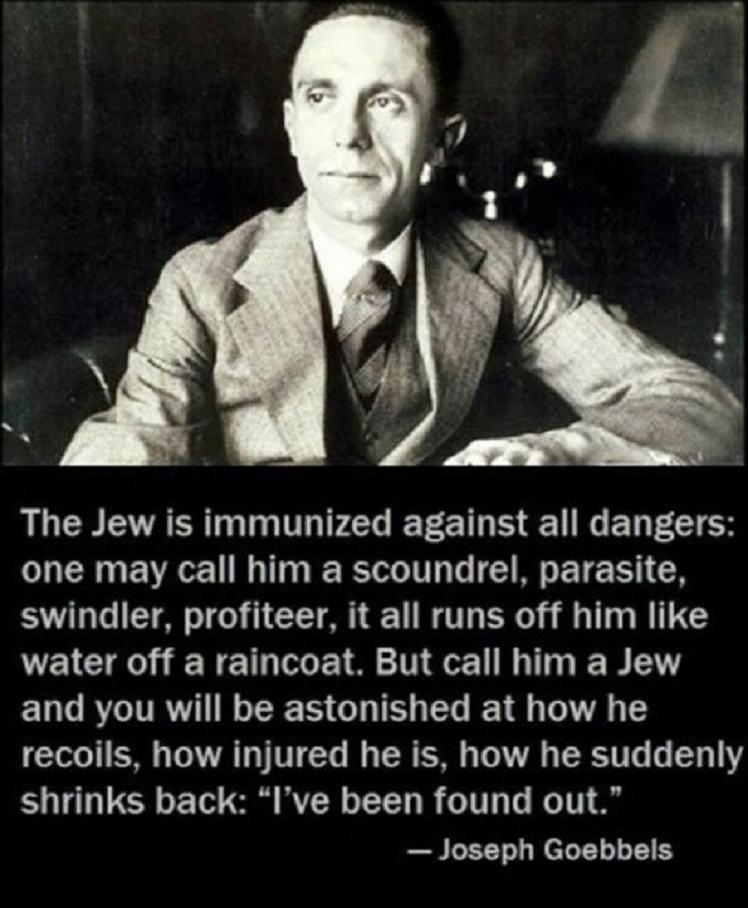 Ignoring the fact that ‘ALL’ of the Nazis were of illegitimate-bastard Jew descent, including Eichmann and Hitler as well as ‘Frogshit’ above, or as some people called him, ‘Goebbels’, financed by the Zionists in the US Fed to loot Europe’s and South America’s gold along with any gold in Africa they came across while creating the conditions needed for Zionist Masons to push argument for the Balfour Declaration seizing Palestinian Land without payment to create the new Israeli nation state world gambit, I’m pretty sure another Zionist will be elected US President later this year…