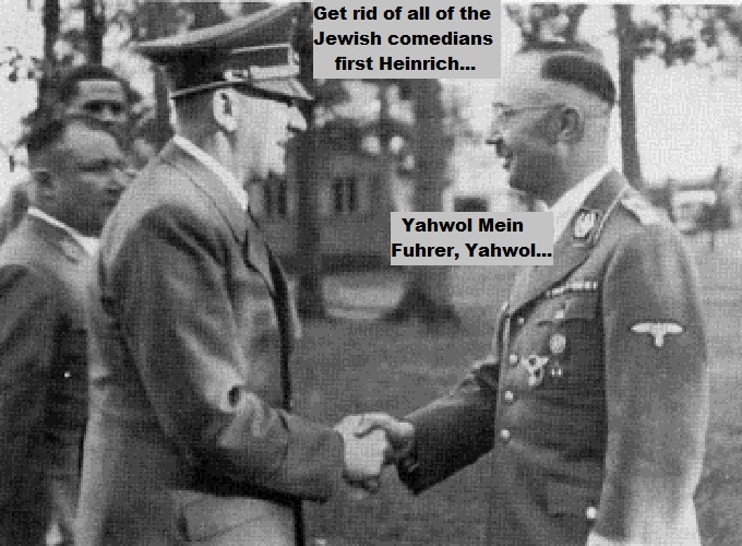 I-have (Personal) permission to (Re) tell this following story about a part of what went down behind the scenes of Zion’s world chess play of ‘WW2’ using secretly Zionist mostly German Jew Masons where the story involves so many convoluted twists and turns that the average 180 Char Twitter poster may as well, whether male or female, just toddle off to bed right now and after taking a bottle of ‘Dr Feelgood’s congressional cocaine and Viagra’ pills, jerk off for a few hours while watching old ‘Gary Glitter’ videos rather than continue reading ~ That’ll be far more enlightening to your political spiritual and philosophical understanding than what I’m saying here, and it’ll be more uplifting to your soul rather than reading any further, because this actually requires you to think, and to think for yourselves too ~ Anyway, a favor was asked of me while still both a child in years and a mildly naïve adult-child to do so, to re-tell this story, a favor asked by their Fuhrer, and by their Italian Stallion, and also by Uncle ‘Eichie’ tho not necessarily in that order and, although naïve enough to respond affirmatively I’d still been smart enough to place an unchangeable condition on the first person who asked, one where I’m under no obligation to keep retelling this factual story, or cease, whatever, until I’ve received justice ~ A wry smile on the face of the person that asked me showed me that he’d perhaps rightly assumed I’d never get justice, but had, to put it pretty cynically, ‘Taken the bait’ anyway, that much was obvious, although in all truth that was just their perspective 😦