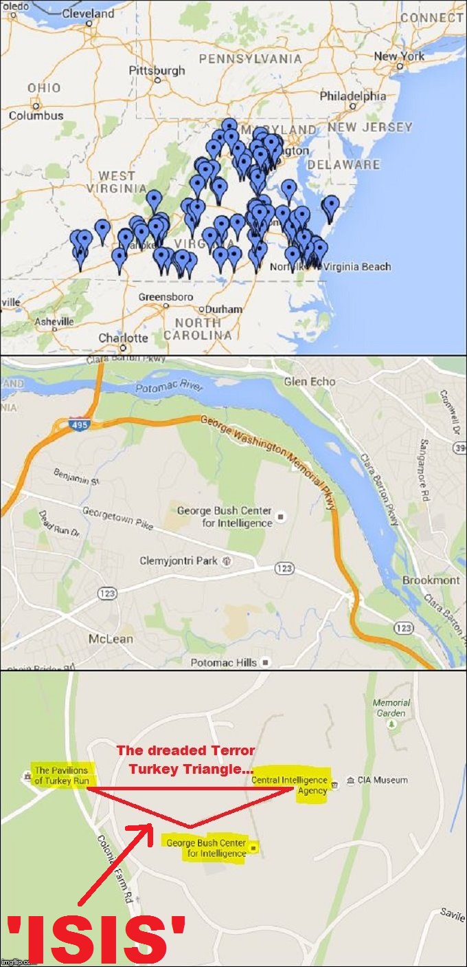 They’re somewhere inside the dreaded McLean ‘TERROR TURKEY TRIANGLE’ which is said to be down in the McLean Virginia area ~ Be careful reader, it’s a spooky mystical place where money disappears an ‘PUFF THE (Invisible-flying) MAGIC DRAGON’ lives, or so (Some) humorously malicious ‘CIA’ morons implied to me as a child 😉