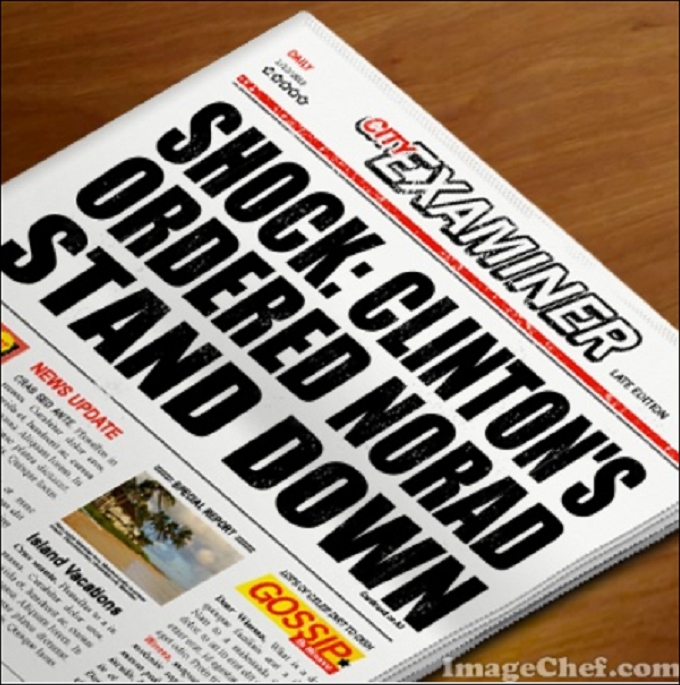 Headline could read SHOCK: Clinton’s ordered ‘NORAD‘ stand down for ‘911’ or SHOCK: Clinton’s ordered Air Force to Alaska, but instead, all they could say is…