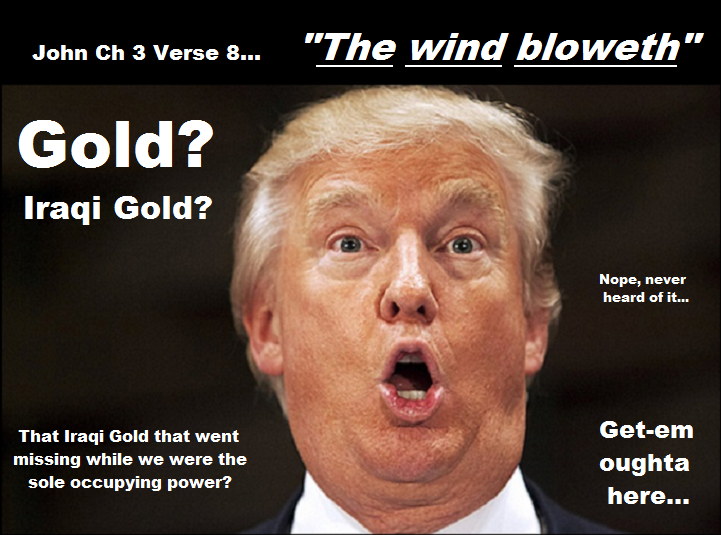 Did god tell George W Bush to steal all of Iraq’s gold too people?