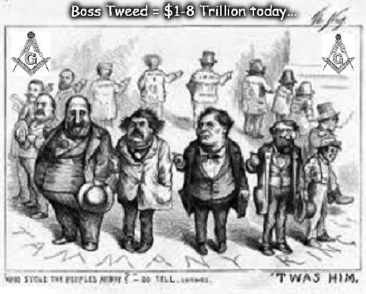 That’s the equivalent of $1 to $8 Trillion Mason Boss Tweed stole…