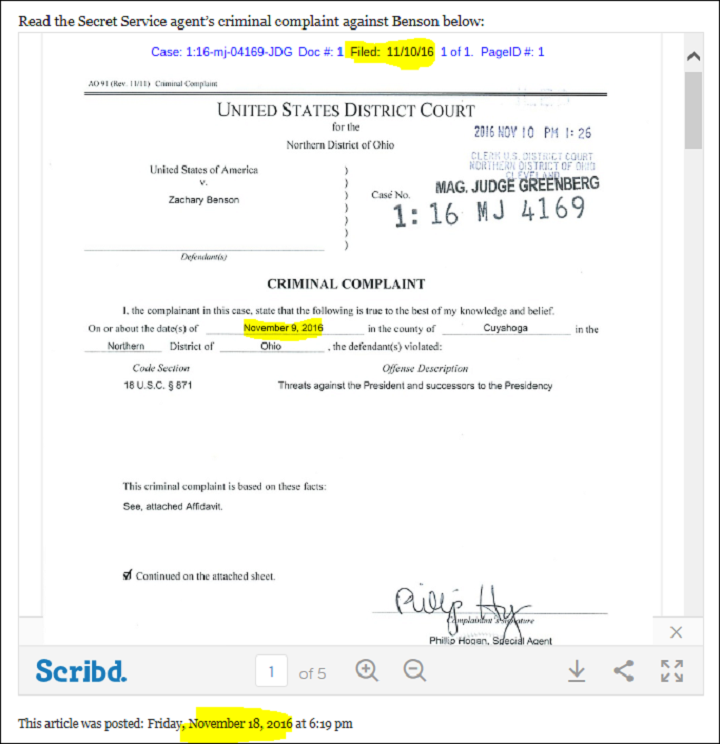 An Ohio man was arrested after posting death threats against Donald Trump on Twitter and threatening to bomb polling stations following the president elect’s victory. Zachary Benson, 24, now faces five years in prison after a series of post-election tweets in which he stated an intent “to assassinate Trump.” […]