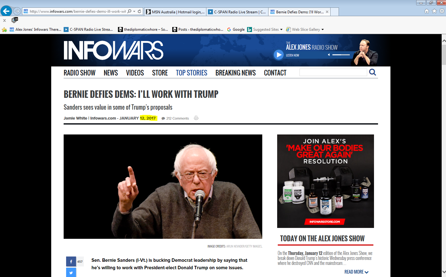 Extra’s from Infowars ‘Bernie works with Trump’ page…