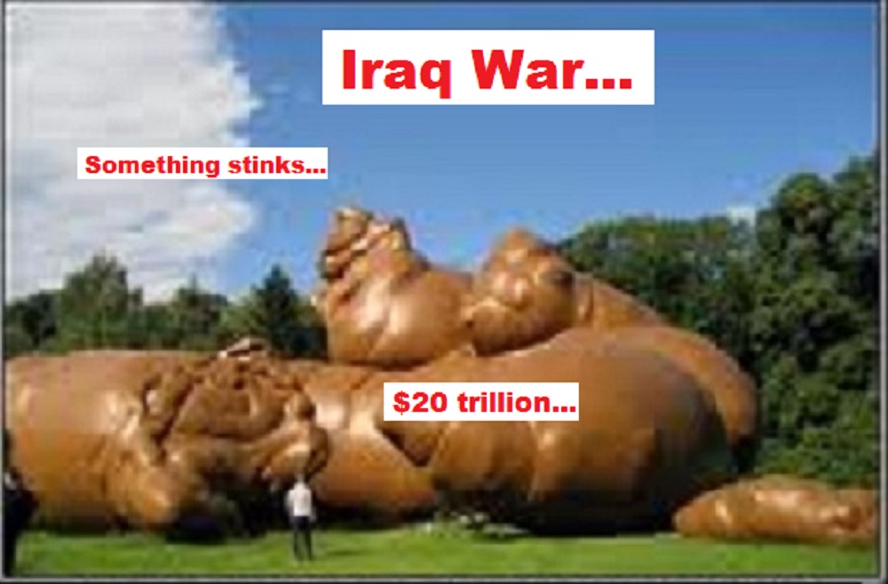16 years of madness since Washington claims Cessna Pilot’s were performing complicated moves in commercial jets that exceeded the ability of the aircraft’s airframe to survive, 1.3+ million Iraq’s are dead, the US Taxpayer is down as much as $20 trillion dollars they can only borrow from their major creditor China, Iraq lost all of the gold bullion the UN ‘WMD’ weapons inspectors found in the 1990’s, yet still the US pours money into this anti-Islamic madness it’s developed under Zion’s control…