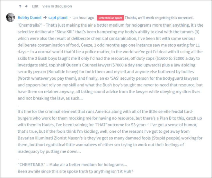 Even my Aussie friends who seem to have some amount of individual intelligence… WILL not talk about chem trails, even though both of them saw some and one took pictures of them,and tried to convice me the chem trails were not happening… by showing the photos to me…. the fluoride and brain training runs deep here in OZ.