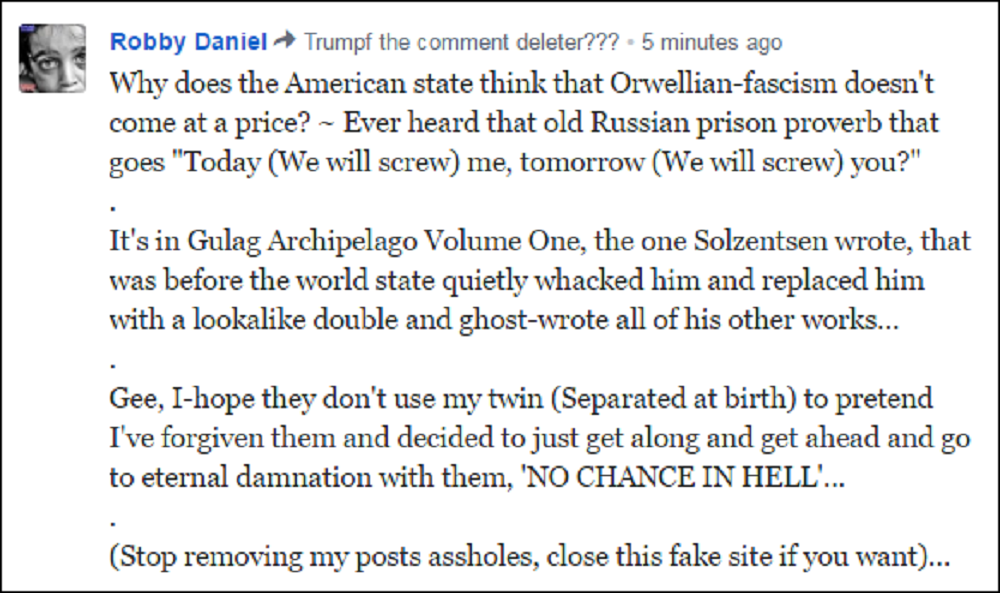 Here’s a little repeat-overview for you to do with why you, America, desperately need to either fight for a 100% treason amnesty going back 60 odd years, or just roll over and die on your way to eternal damnation as your hypocrisy initially takes 1\3rd of the world, that’s 2 billion relatively innocent people, with you in Hades or Sheol or whatever else you wish to call it, and with you claiming to be the last bastion of truth in this world, many of you will go there as hypocrites won’t you…