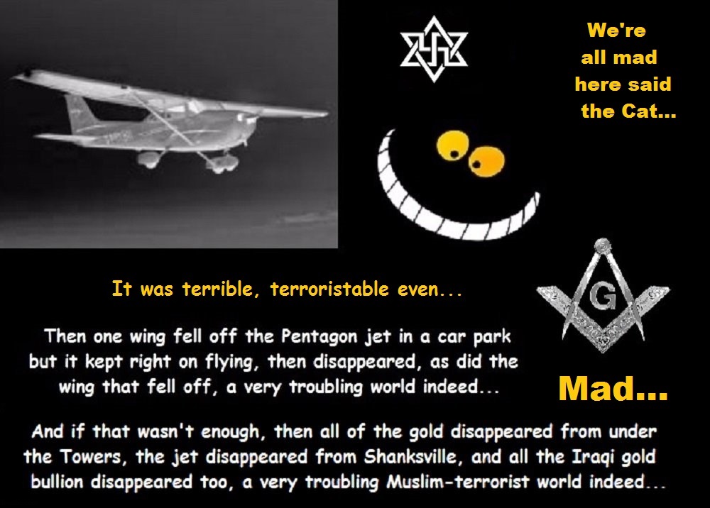 But first, how do you think Cessna Pilot’s got that gold they stole from the World Trade Center vaults out of the country and onto the world gold market? ~ Do you think they used a commercial jet? ~ Hell, that would’ve taken a fleet of commercial jets, there was more than a few 100 tons wasn’t there, so how did they do it? ~ Maybe we should ask them, something like “C’mon Abdullah, just fess up, we got you to rights now, ‘How did you get all of that gold you stole from the World Trade Center vaults on Sept 11 2001 out of the fcuking country and onto the world gold market’ you sneaky sleazy sly Muslim terrorist camel’s-crotch crazies you?”