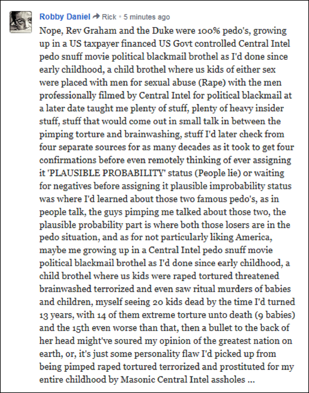 So perhaps the real reason for this idiot subnet isn’t always about protecting the Sept 2001 plotters for the Sept 2001 crimes after all, maybe this fake subnet website, designed as it is to try to make me look stupid for posting on it, is really designed to protect 5 American Freemason’s whom I’d witnessed committing the worst kind of human rights abuses and atrocities known to man, the ritual Jewish kabala torture murders of babies and children ~ Yet America’s hypocrites wonder why occasionally I’ll say ‘DAMN YOU‘ along with other well chosen negative epithets? ~ That was 20 child murders I’d seen those pigs in ‘CIA’ pull from 1963 to late 1969 and 14 of them were outright torture murders by those five men I’ve just identified…