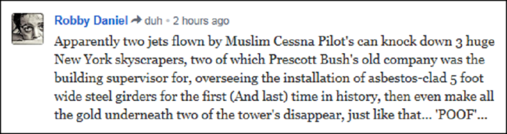 But first, how do you think Cessna Pilot’s got that gold they stole from the World Trade Center vaults out of the country and onto the world gold market? ~ Do you think they used a commercial jet? ~ Hell, that would’ve taken a fleet of commercial jets, there was more than a few 100 tons wasn’t there, so how did they do it? ~ Maybe we should ask them, something like “C’mon Abdullah, just fess up, we got you to rights now, ‘How did you get all of that gold you stole from the World Trade Center vaults on Sept 11 2001 out of the fcuking country and onto the world gold market’ you sneaky sleazy sly Muslim terrorist camel’s-crotch crazies you?”
