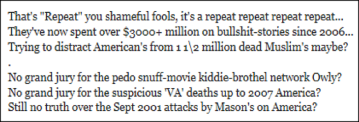 For the record, most if not all of the posters on the once real now 100% fake US Govt Cyber Security “Prison Planet” subnet website are paid posters, often multiple posters working for various parts of the US Govt or it’s political media using the same account at different times, all keeping to a ‘SCRIPT‘ of sorts, a set of fairly well defined parameters or guidelines about what they can say and what they can’t, all directly or indirectly paid for by the US taxpayer, supposedly on the basis of it being for “The safety and security of the American people” ~ The reality is far removed from that though, in all truth it’s all about maintaining “The safety and security of the Freemason’s who pulled the Sept 11 2001 attacks” but never mind that for the moment ~ It’s also served a purpose as a whiteboard of sorts for these blogs of mine, yet seriously, there’s even more afoot than just confusing and distorting people’s perspectives of recent political events (Crimes) that the insider’s of Washington want blurred…