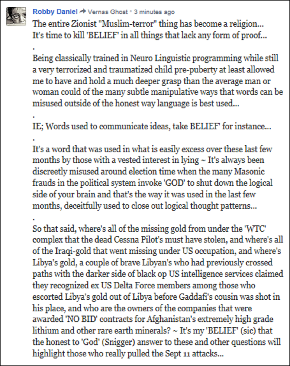 (So much for free speech in the ‘NWO‘ that loves us and wishes only to guide us)…