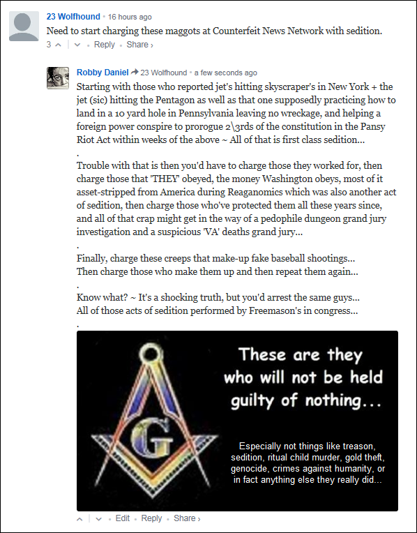 On Sept 11 2001 you had a Coup D’Etat run by Freemason’s America…