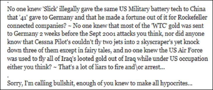 Dude working for ‘CIA’ told me those events above before they happened, literally a German-born twin brother of your 41st president America ~ Maybe you should just think about that for a bit, his German-born twin brother told me about both of those events prior to the day they happened, he even told me why they’d done each one, both revolving around suppression of the real Kennedy story ~ It’s what often happens if fools in power get away with thinking that lying is smarter than telling the truth, sooner or later truth becomes an enemy of the state…