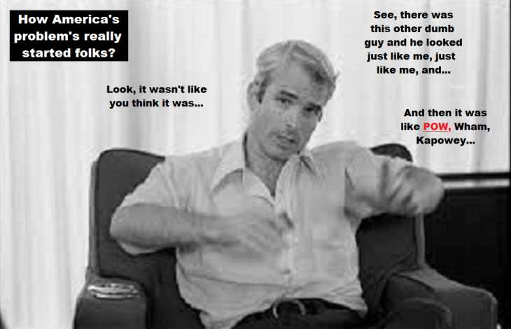 Later on I’d met two other ‘CIA’ guys who both used the name “George Herbert Walker Bush” and obviously, two of them had to have been lying (Snigger) but I’d just been a kid and had been advised to just play along, to deadpan them if you will, so I’d just responded with a “Yeah whatever” to anything they said or didn’t say…