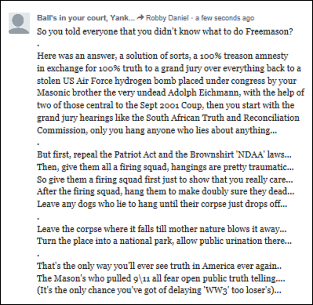 For the record, most if not all of the posters on the once real now 100% fake US Govt Cyber Security “Prison Planet” subnet website are paid posters, often multiple posters working for various parts of the US Govt or it’s political media using the same account at different times, all keeping to a ‘SCRIPT’ of sorts, a set of fairly well defined parameters or guidelines about what they can say and what they can’t, all directly or indirectly paid for by the US taxpayer, supposedly on the basis of it being for “The safety and security of the American people” ~ The reality is far removed from that though, in all truth it’s all about maintaining “The safety and security of the Freemason’s who pulled the Sept 11 2001 attacks” but never mind that for the moment ~ It’s also served a purpose as a whiteboard of sorts for these blogs of mine, yet seriously, there’s even more afoot than just confusing and distorting people’s perspectives of recent political events (Crimes) that the insider’s of Washington want blurred…