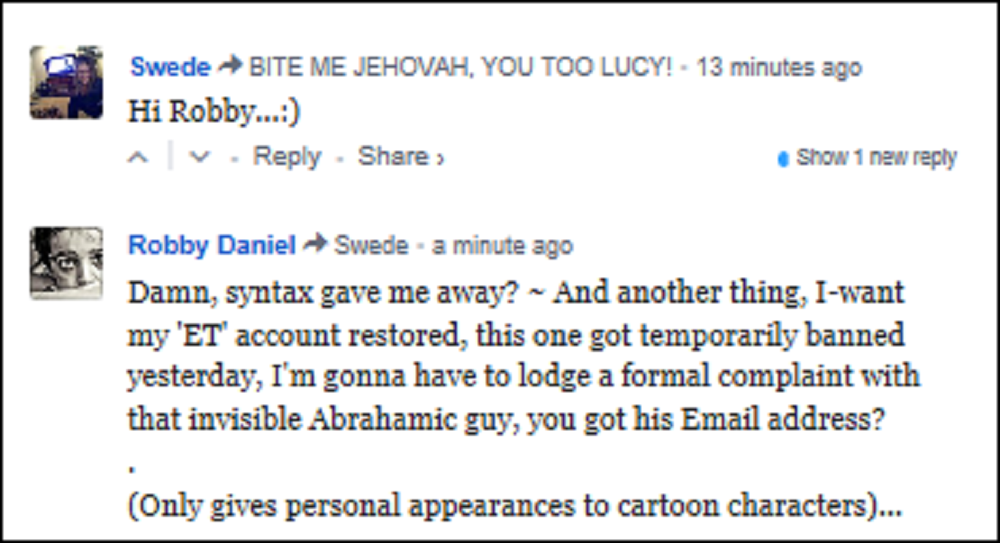 Time to think if you’re reading my blogs ~ Some people (Like myself) often used to wonder why, if Jehovah was so almighty and Jesus was so selfless and righteous, and brave and faithful, why his omnipotent father-self (sic) allowed the devil to kill him and do away with his cadaver in a fake “Live-shooter” (sic) resurrection…