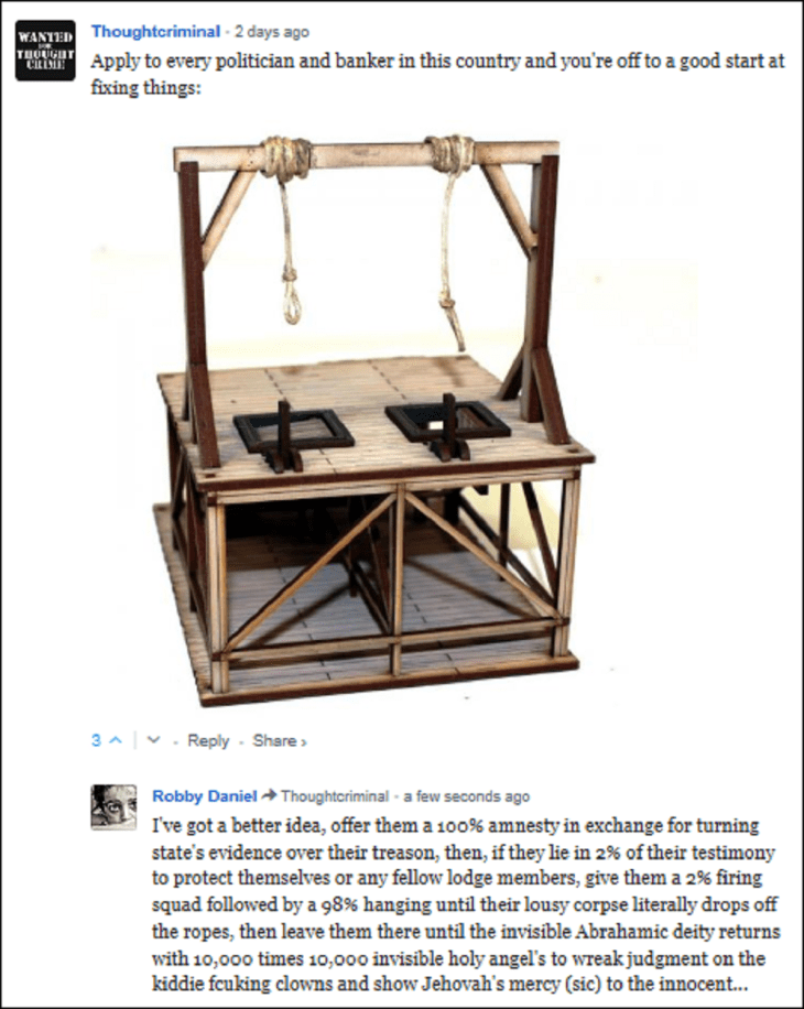 Then leaving them to hang till their lousy corpse drops off of the ropes…
