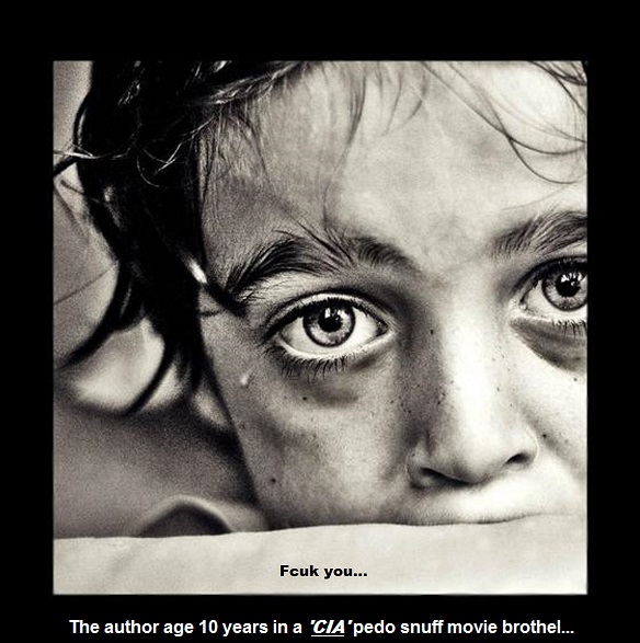 So perhaps the real reason for this idiot subnet isn’t always about protecting the Sept 2001 plotters for the Sept 2001 crimes after all, maybe this fake subnet website, designed as it is to try to make me look stupid for posting on it, is really designed to protect 5 American Freemason’s whom I’d witnessed committing the worst kind of human rights abuses and atrocities known to man, the ritual Jewish kabala torture murders of babies and children ~ Yet America’s hypocrites wonder why occasionally I’ll say ‘DAMN YOU’ along with other well chosen negative epithets? ~ That was 20 child murders I’d seen those pigs in ‘CIA’ pull from 1963 to late 1969 and 14 of them were outright torture murders by those five men I’ve just identified…