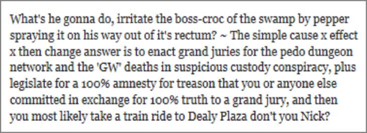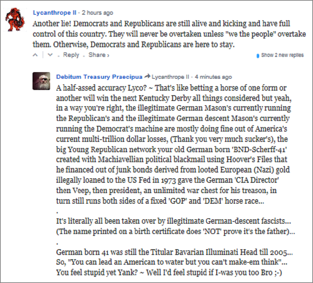 For the record, most if not all of the posters on the once real now 100% fake US Govt Cyber Security “Prison Planet” subnet website are paid posters, often multiple posters working for various parts of the US Govt or it’s political media using the same account at different times, all keeping to a ‘SCRIPT’ of sorts, a set of fairly well defined parameters or guidelines about what they can say and what they can’t, all directly or indirectly paid for by the US taxpayer, supposedly on the basis of it being for “The safety and security of the American people” ~ The reality is far removed from that though, in all truth it’s all about maintaining “The safety and security of the Freemason’s who pulled the Sept 11 2001 attacks” but never mind that for the moment ~ It’s also served a purpose as a whiteboard of sorts for these blogs of mine, yet seriously, there’s even more afoot than just confusing and distorting people’s perspectives of recent political events (Crimes) that the insider’s of Washington want blurred…