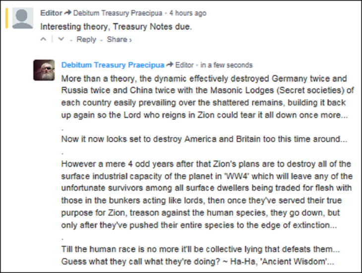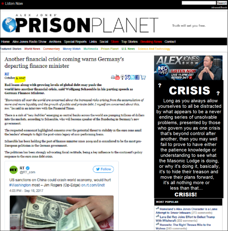 For the record, most if not all of the posters on the once real now 100% fake US Govt Cyber Security “Prison Planet” subnet website are paid posters, often multiple posters working for various parts of the US Govt or it’s political media using the same account at different times, all keeping to a ‘SCRIPT’ of sorts, a set of fairly well defined parameters or guidelines about what they can say and what they can’t, all directly or indirectly paid for by the US taxpayer, supposedly on the basis of it being for “The safety and security of the American people” ~ The reality is far removed from that though, in all truth it’s all about maintaining “The safety and security of the Freemason’s who pulled the Sept 11 2001 attacks” but never mind that for the moment ~ It’s also served a purpose as a whiteboard of sorts for these blogs of mine, yet seriously, there’s even more afoot than just confusing and distorting people’s perspectives of recent political events (Crimes) that the insider’s of Washington want blurred…