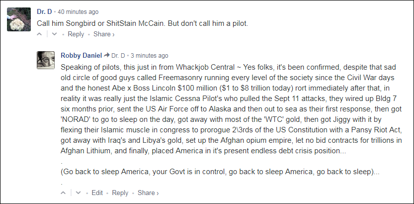 Jesus Christ you’re the world’s leading state of constant denial America aren’t you, I’ve just heard your Masonic politicos on ‘CSpam’ (sic) internet radio state that allegations of torture against Gina Haspel, new director of the ‘CIA’ were false, however the only thing false there is you America ~ I’m ready to give evidence in court right now about that lying devious fifth column Fourth Reich Schwammberger bitch videoing my torture in 2004 but you’re not ready to hear anything which contradicts the lies you live by, that make believe fairy tale Islamic Cessna Pilot’s reality where anyone who calls you out on your Govt’s lies is a troublemaker, a Loony, or a terrorist…
