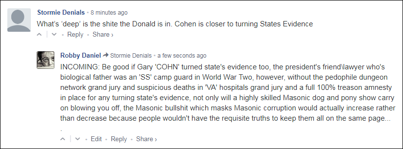 Be good if Gary ‘COHN’ turned state’s evidence too, the president’s friend\lawyer who’s biological father was an ‘SS’ camp guard in World War Two, however, without the pedophile dungeon network grand jury and suspicious deaths in ‘VA’ hospitals grand jury and a full 100% treason amnesty in place for any turning state’s evidence, not only will a highly skilled Masonic dog and pony show carry on blowing you off, the Masonic bullshit which masks Masonic corruption would actually increase rather than decrease because people wouldn’t have the requisite truths (Needed)…