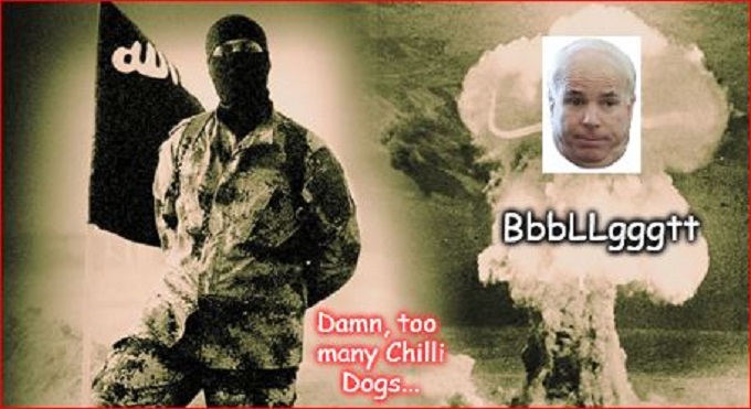If I’d be American instead of Aussie then my biggest fear apart from another false flag is if I’d grow any older without gaining justice and real health care, I’ll only have cocaine induced occultist erections in my head like Sen John McCain does with underage voters bent over a barrel of Orwellian bullshit, or, if the real Bavarian Illuminati Zio-devil gets me first, I’ll have Donald Trump’s hair…
